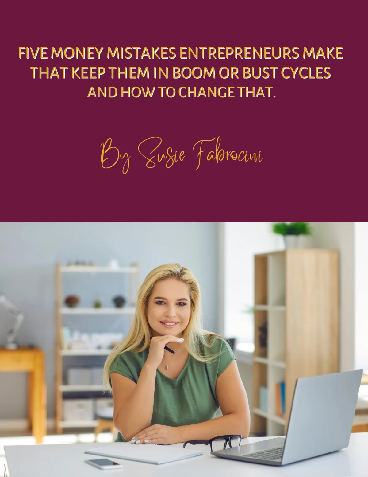 Through her own experiences and expertise, Susie has developed programs and guides to help women business owners overcome their money worries and get control of their finances and manage their money so they can thrive in their businesses and experience peace of mind and stress-free living.
